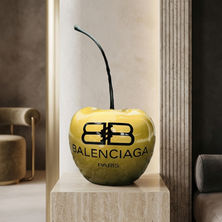 œuvre colorée, travaillé avec les logos et emblèmes de marques de luxe dans un esprit