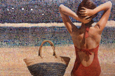 Son art st le reflet de notre société ancrée dans une ère digitale et hyperconnectée. Ces milliers de petites photos qui composent ses œuvres font échos à la surreprésentation d'images, de visions publicitaires ou encore de représentations érotiques qui nous entourent au quotidien. Ces minuscules photographies confèrent aux œuvres de l'artiste une profondeur et une impression d'infini. Une lecture à double dimension tant au niveau du contenu que de la forme.